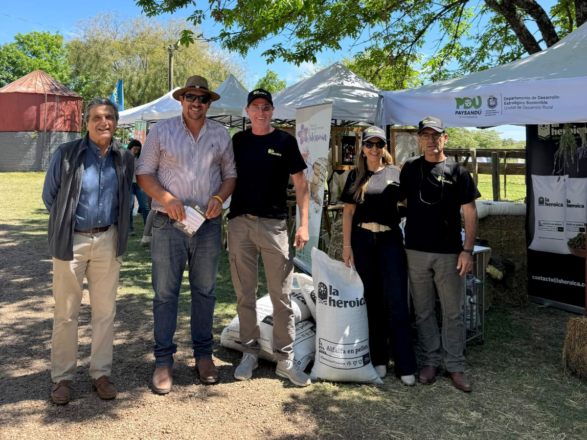 Durante los días de exposición, recibimos la visita de autoridades de la Intendencia de Paysandú, con quienes compartimos nuestra visión sobre el valor de la innovación y la sostenibilidad en la producción de alfalfa en pellets, un alimento natural, práctico y de alta calidad para el ganado.